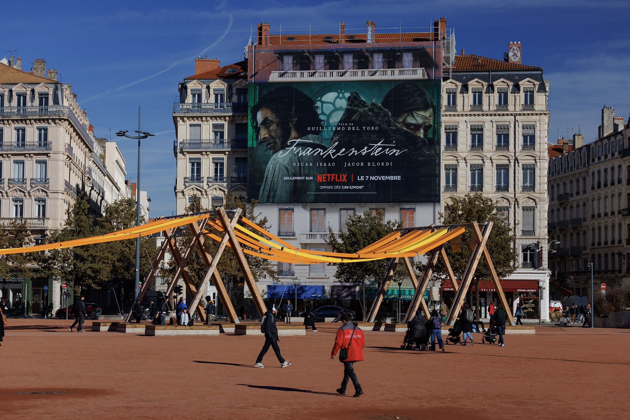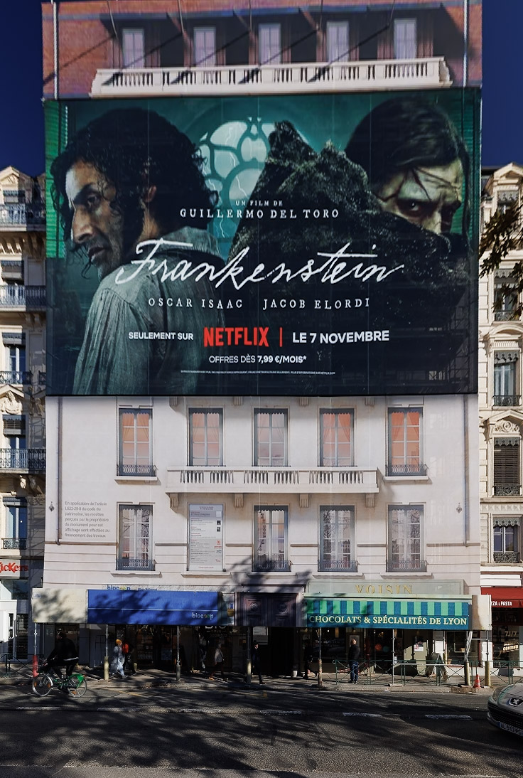 Quand un film événement rencontre une place iconique, la ville devient scène. À l’occasion de la sortie de “Frankenstein” sur Netflix, nous avons conçu, fabriqué et posé une toile monumentale place Bellecour à Lyon. Un geste urbain pensé pour capter l’attention, offrir un rendu impeccable et incarner une communication premium, du brief au dernier réglage… en 3 semaines.