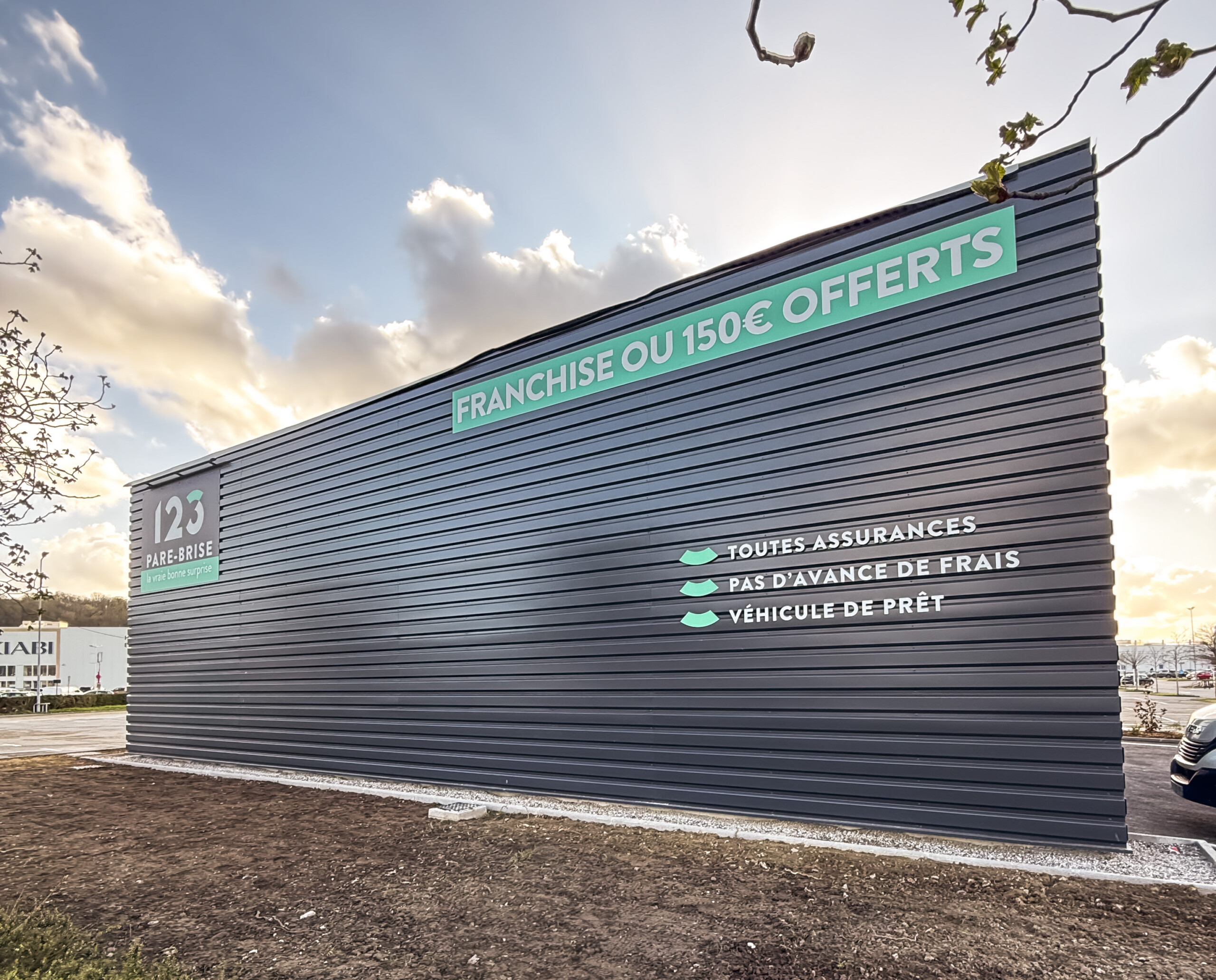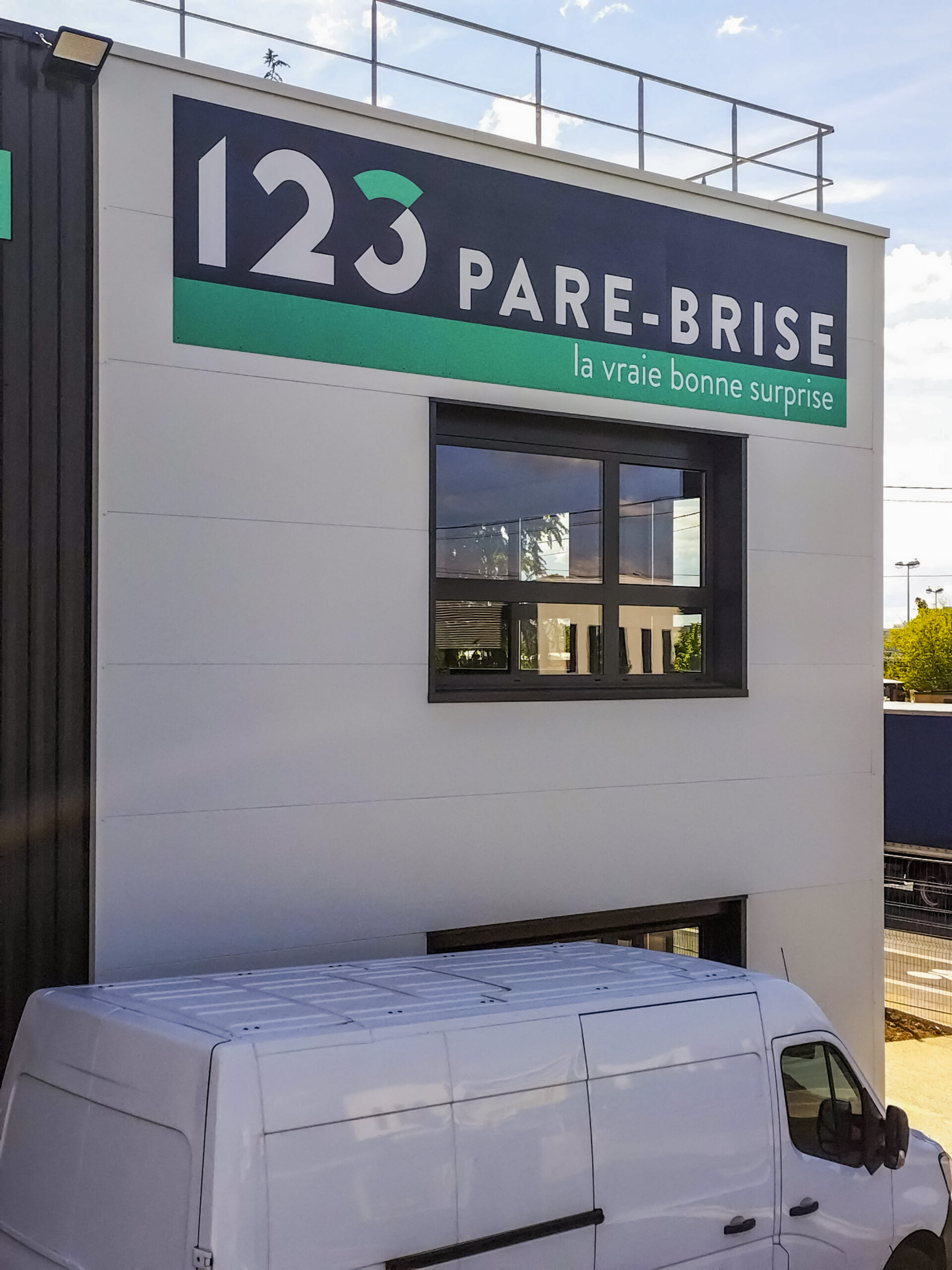 Fidèle partenaire de LightAir depuis 2020, 123 Pare-Brise poursuit son développement. Le spécialiste du vitrage nous confie une nouvelle fois l’implantation visuelle de ses nouveaux centres. L’enseigne inaugure progressivement de nouvelles agences à travers la France. Citons notamment Villabé, Décines, Valenciennes, Tourville et Buchelay. En ce début d’année 2026, nous adaptons minutieusement leur charte graphique à chaque nouveau bâtiment.