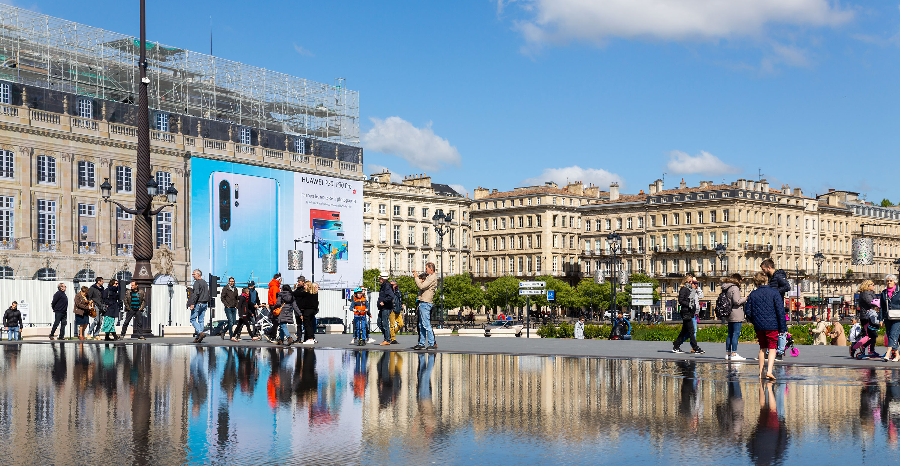 Dans les coulisses de la publicité sur échafaudage Huawei à Bordeaux