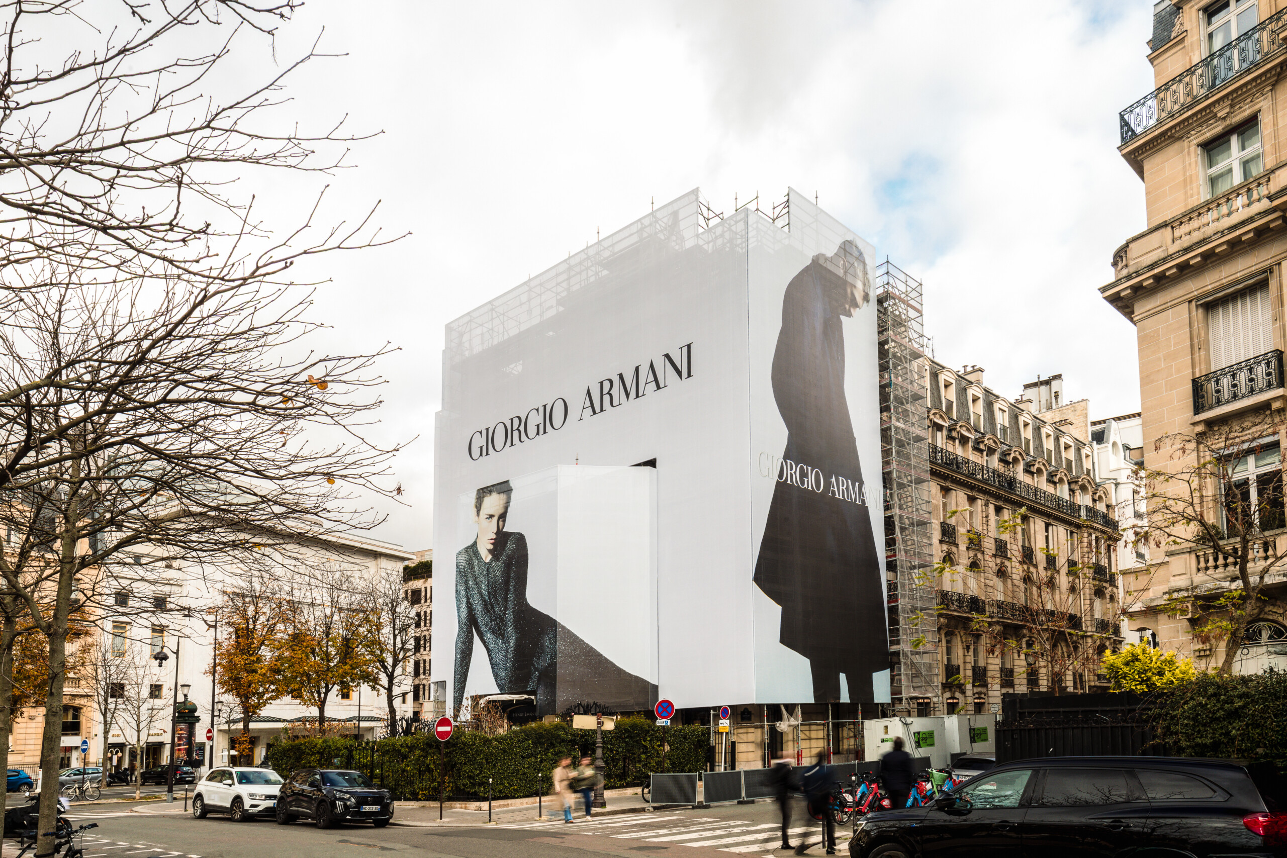 Notre capacité à gérer le sujet de A à Z nous permet également d’offrir à nos clients une grande réactivité de réalisation. Remplacer une toile entre janvier et février demande une coordination millimétrée pour garantir une transition parfaite, afin que la « dernière muse » d’Armani puisse être affichée en temps et en heure.