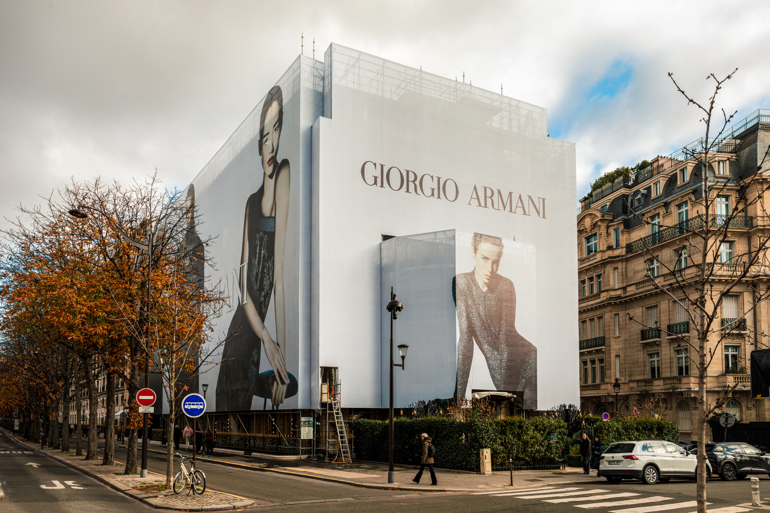 L’Avenue Montaigne impose une exécution exemplaire : visibilité mondiale, flux constant, exigences d’intégration et attentes élevées des riverains et visiteurs. Ici, l’enveloppe de chantier ne se contente pas de masquer des travaux, elle valorise le site et la marque.