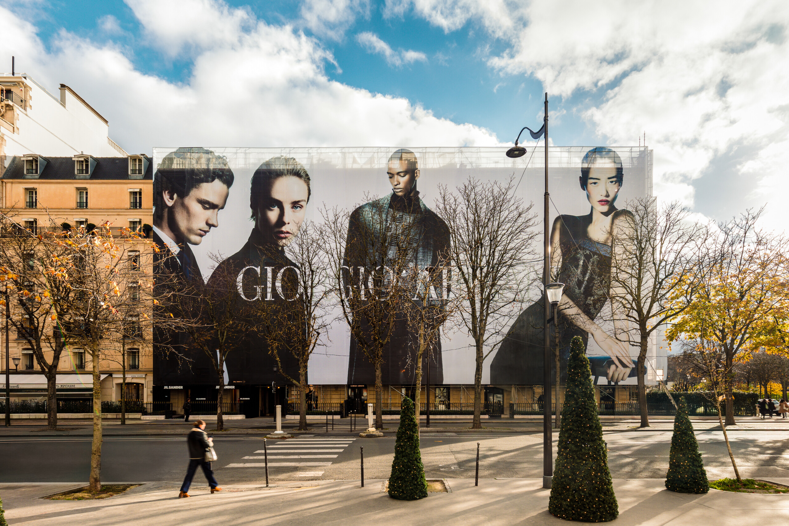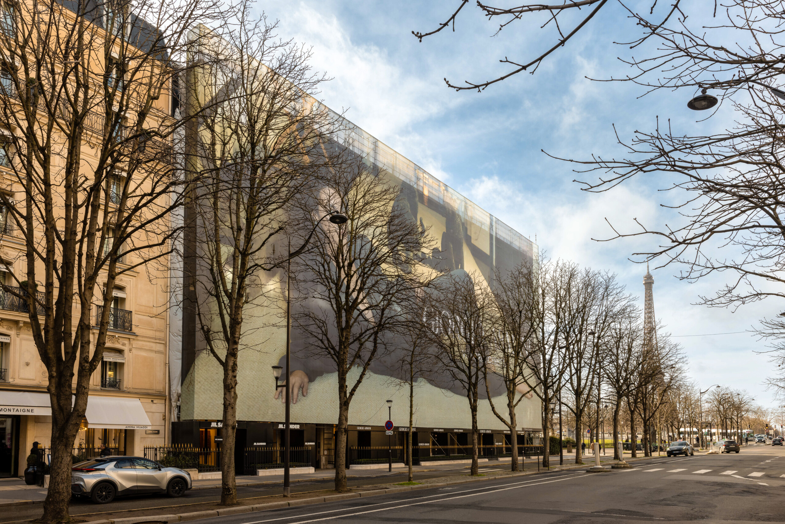 La location d’espace publicitaire sur un lieu prestigieux comme l’Avenue Montaigne, transforme la période de restauration en une opportunité de valeur économique et culturelle pour le site.