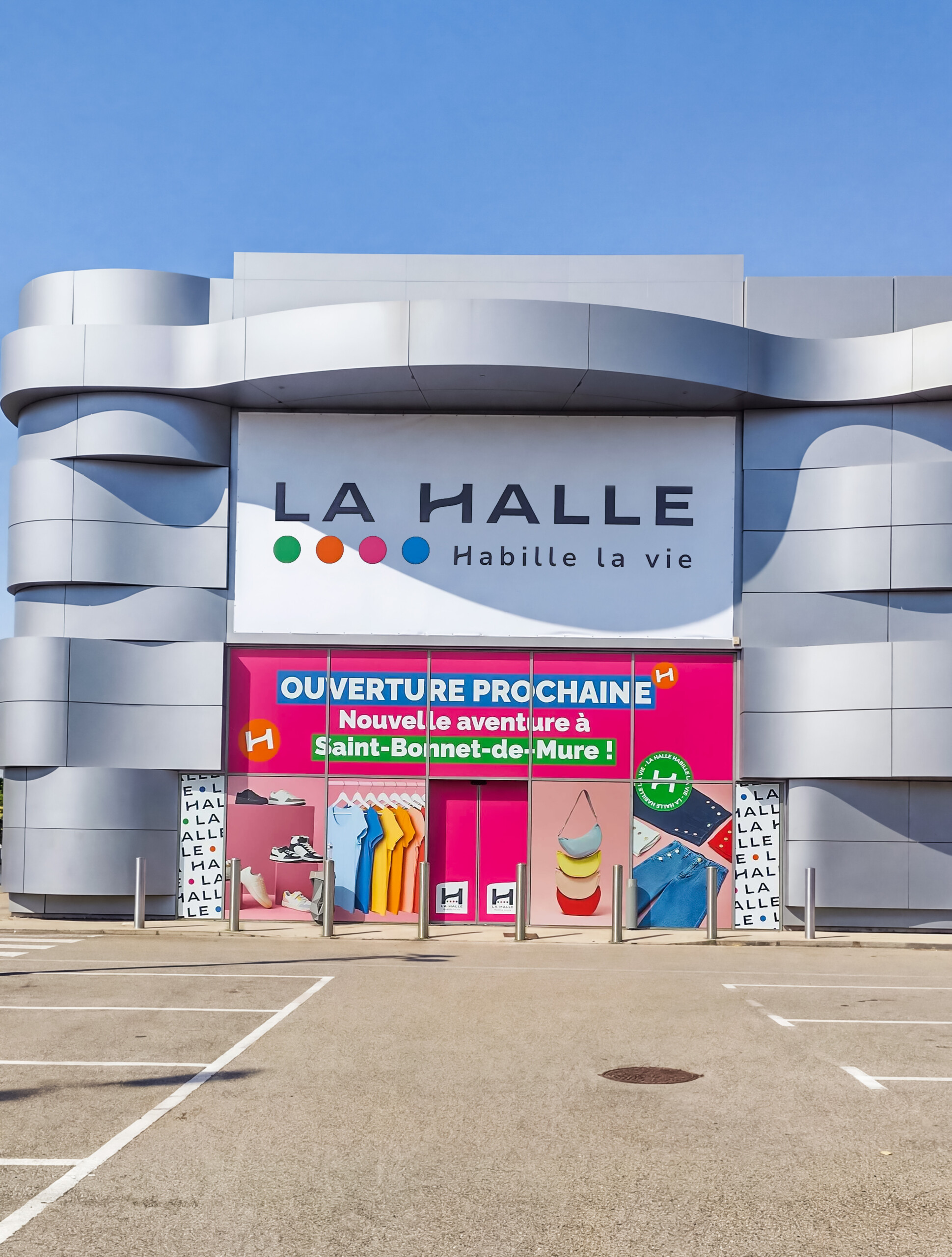 Le Groupe Beaumanoir nous renouvelle sa confiance. Après la signalétique du magasin de Honfleur, nous accompagnons de nouveau La Halle. L’enseigne nous confie une mission claire pour son nouveau point de vente à Saint-Bonnet-de-Mure. L’objectif consiste à annoncer sa prochaine ouverture directement sur le bâtiment grâce à un habillage de façade provisoire.