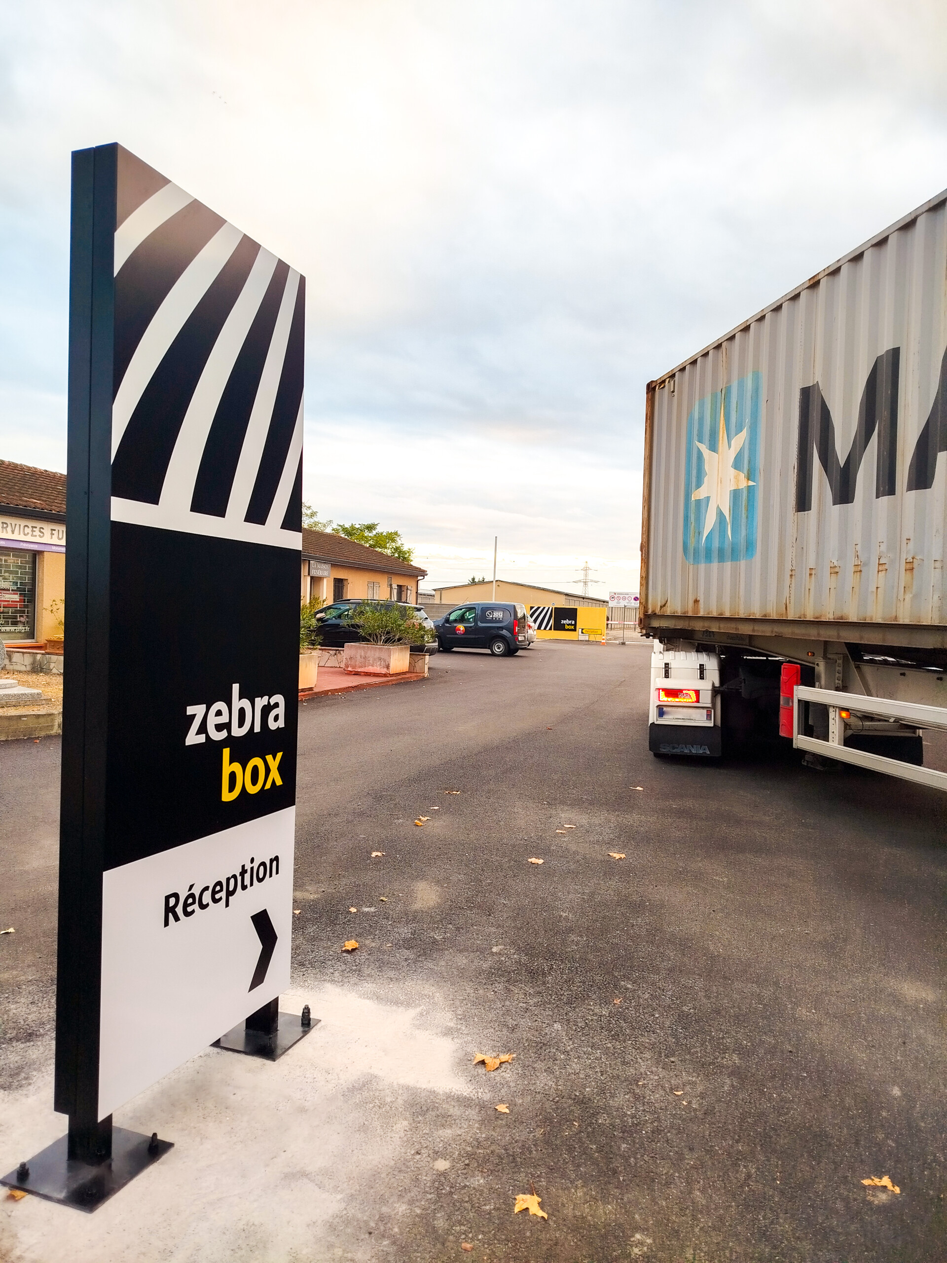 Tout commence par un brief simple et exigeant. Zebrabox, référence du self‑stockage et du garde-meubles sur mesure avec plus de 1500 box, nous a demandé de prévoir le déploiement d’une signalétique réseau pensée pour leur identité bien singulière.